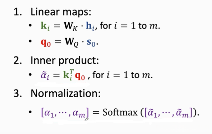 用Wk 和 Wq对两个输入向量hi,s0做线性变换(Wk和Wq是函数中的参数)