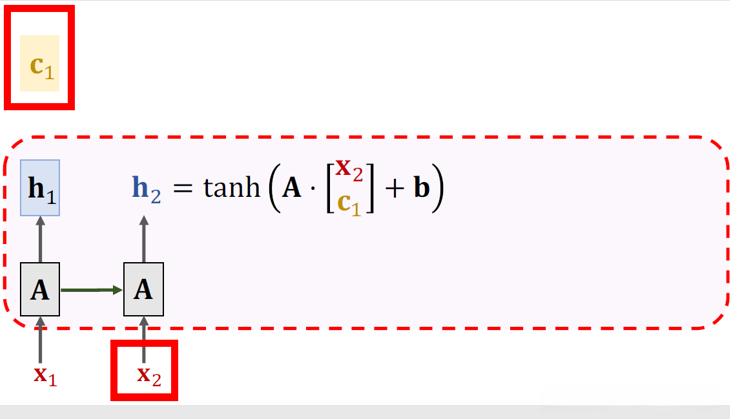 初始h0=c0=0 ,新状态h1依赖于c0和x1,由于h0=0, 所以c1=h1