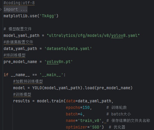 (2)epochs=150: 训练的轮数设置为150轮。
