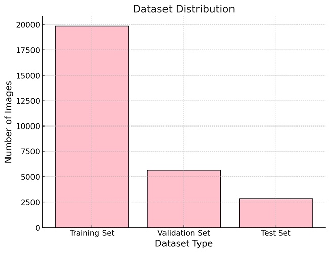 以下柱状图展示了训练集、验证集和测试集的图像数量分布: