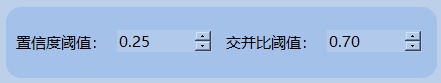 (2)交并比阈值:当前设置为0.70,表示系统只会认为交并比(IoU)超过70%的检测框为有效结果。交并比是检测框与真实框重叠区域的比值,用于衡量两个框的相似程度,值越高表明重叠程度越高。