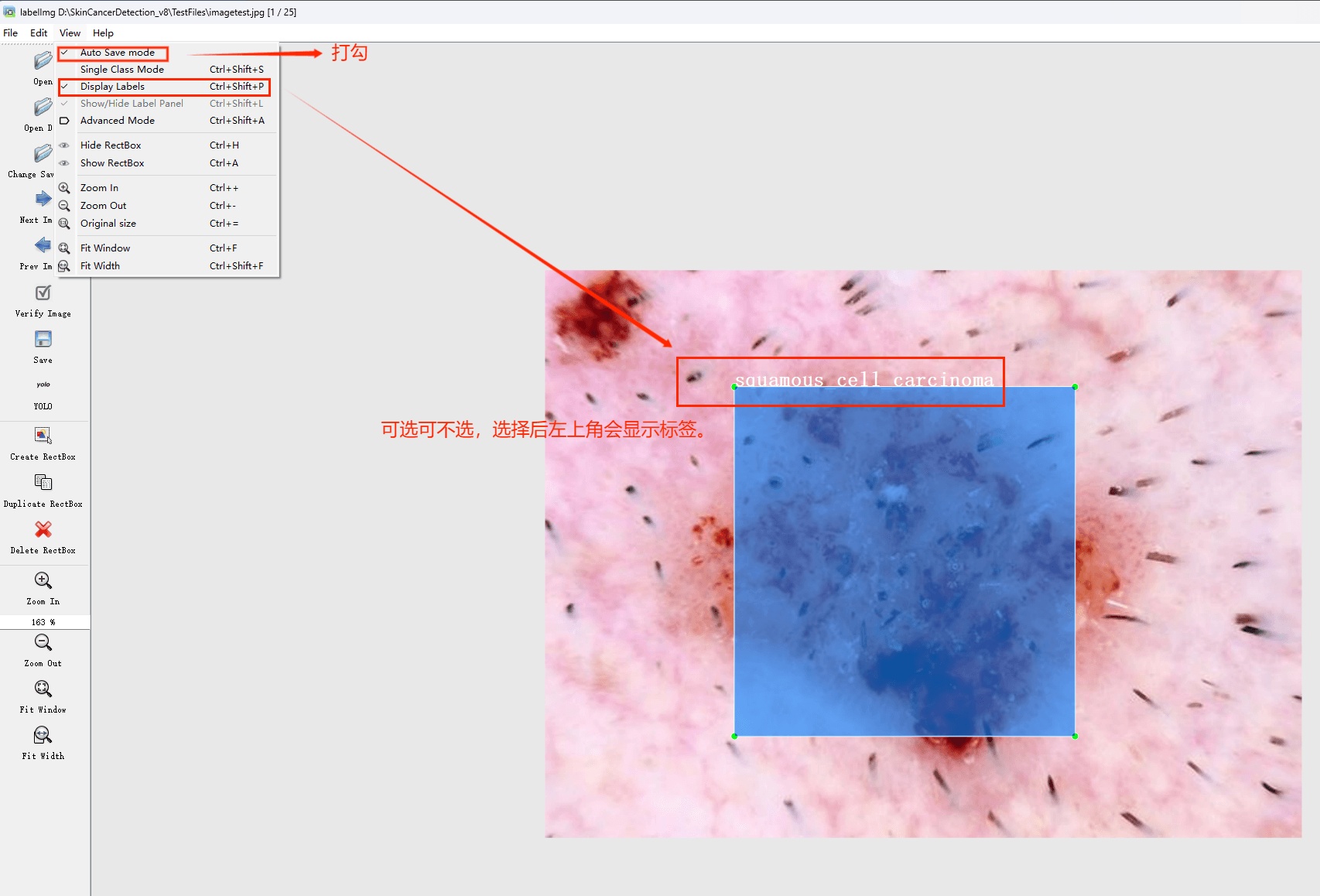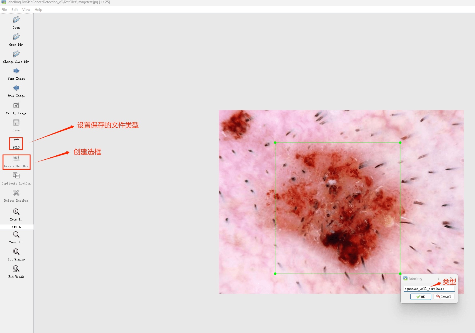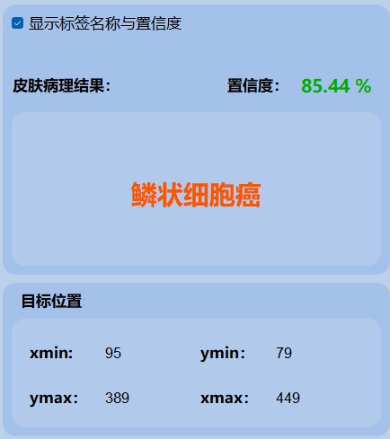 (1)这表示模型对检测到的目标属于“鳞状细胞癌”类别的置信度为85.44%。