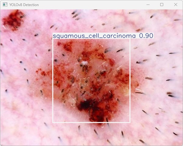 YOLOv8模型在NVIDIA RTX 4070 Ti上成功检测到了图像中的鳞状细胞癌目标,并正确分类。
