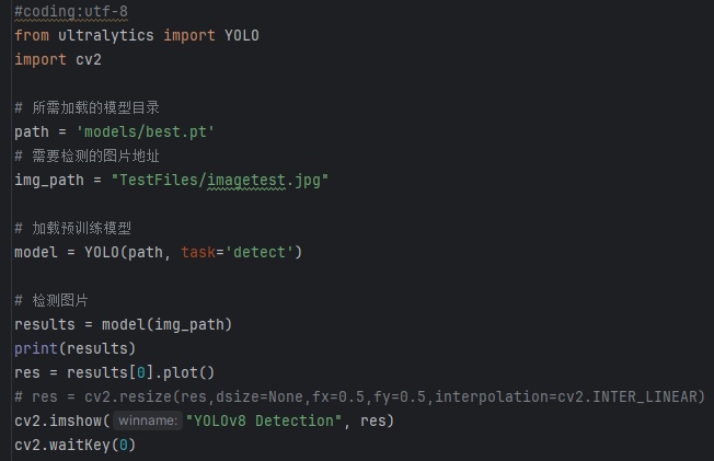 加载名为 yolov8n.pt 的预训练YOLOv8模型,yolov8n.pt是预先训练好的模型文件。