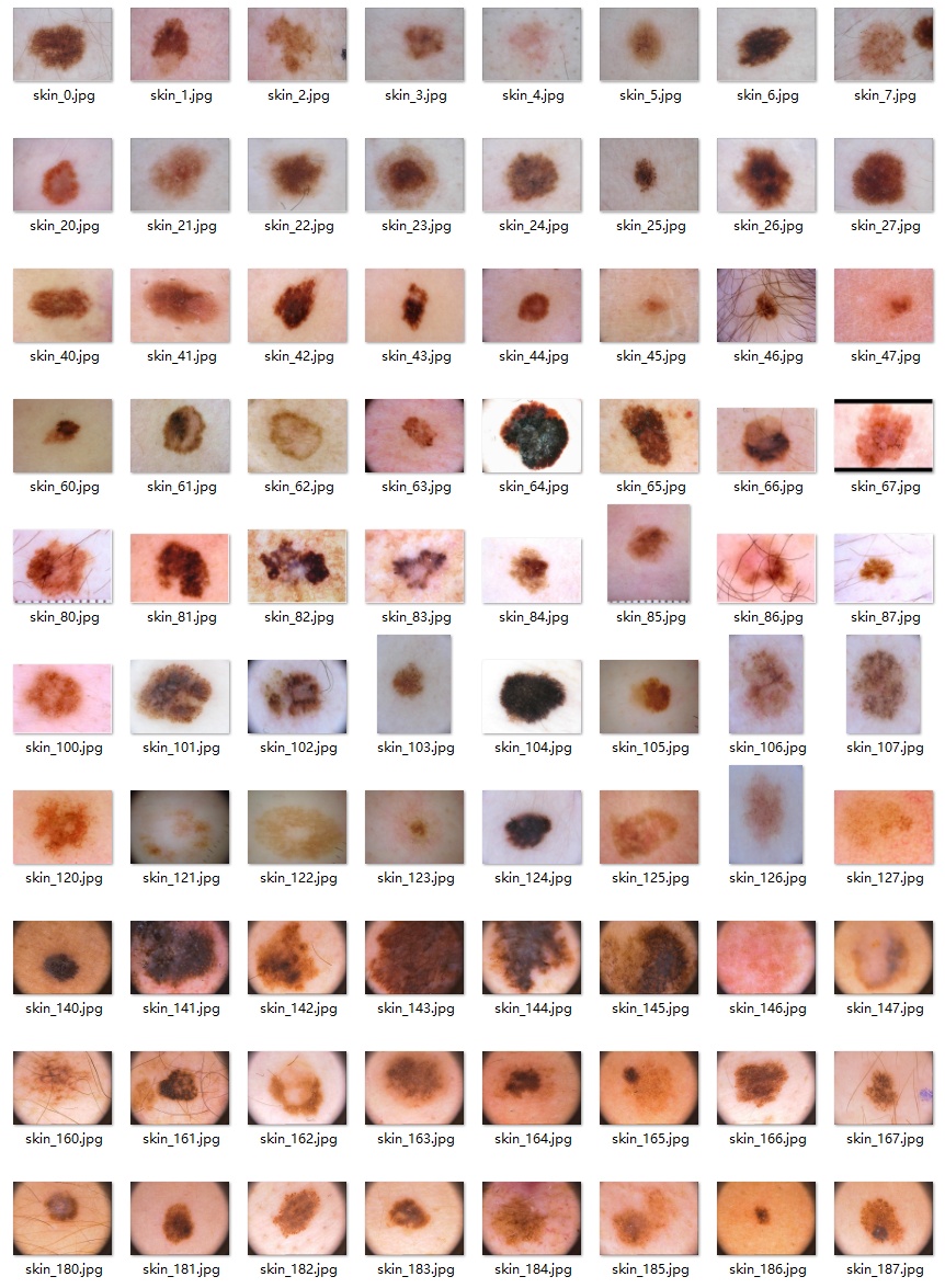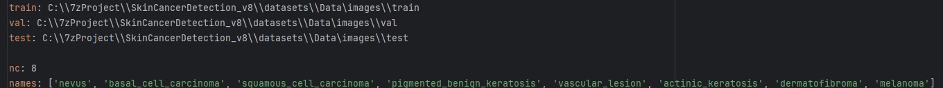 Tipps:通过搜集关于数据集为各种各样的皮肤病理相关图像,并使用Labelimg标注工具对每张图片进行标注,分8检测类别,是’痣’, ‘基底细胞癌’, ‘鳞状细胞癌’, ‘色素性良性角化病’, ‘血管性病变’, ‘光照性角化病’, ‘皮肤纤维瘤’, ‘黑色素瘤’。