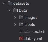 接着需要新建一个data.yaml文件,用于存储训练数据的路径及模型需要进行检测的类别。YOLOv8在进行模型训练时,会读取该文件的信息,用于进行模型的训练与验证。
