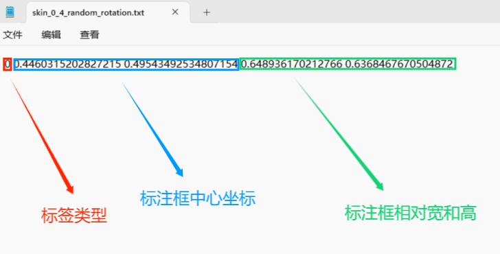 每一行代表标注的一个目标,通常包括五个数据,从左到右依次为:类别id、x_center、y_center、width、height。