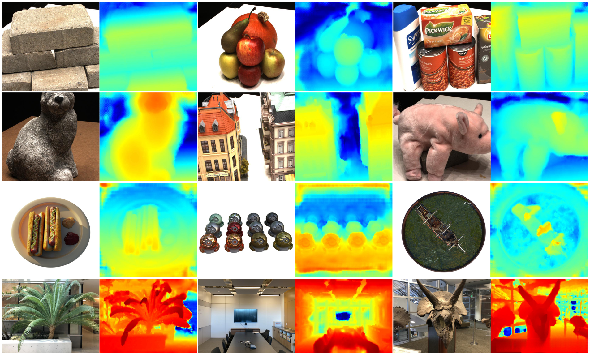 Depth maps visualization. We visualize the depth maps predicted by our method on different datasets.