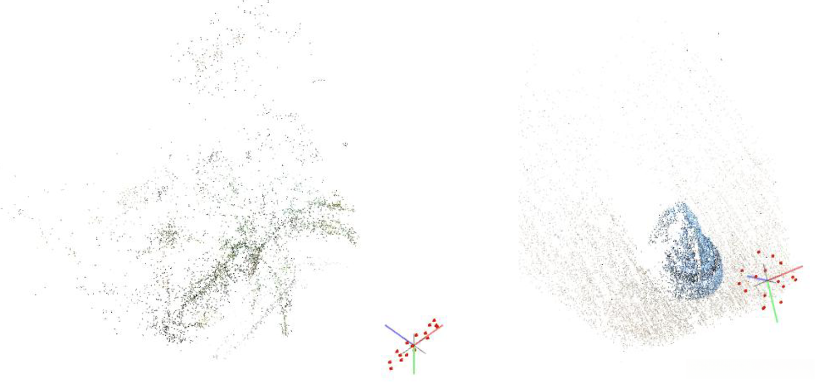 Visualization of camera calibration and point cloud reconstructio n by COLMAP.