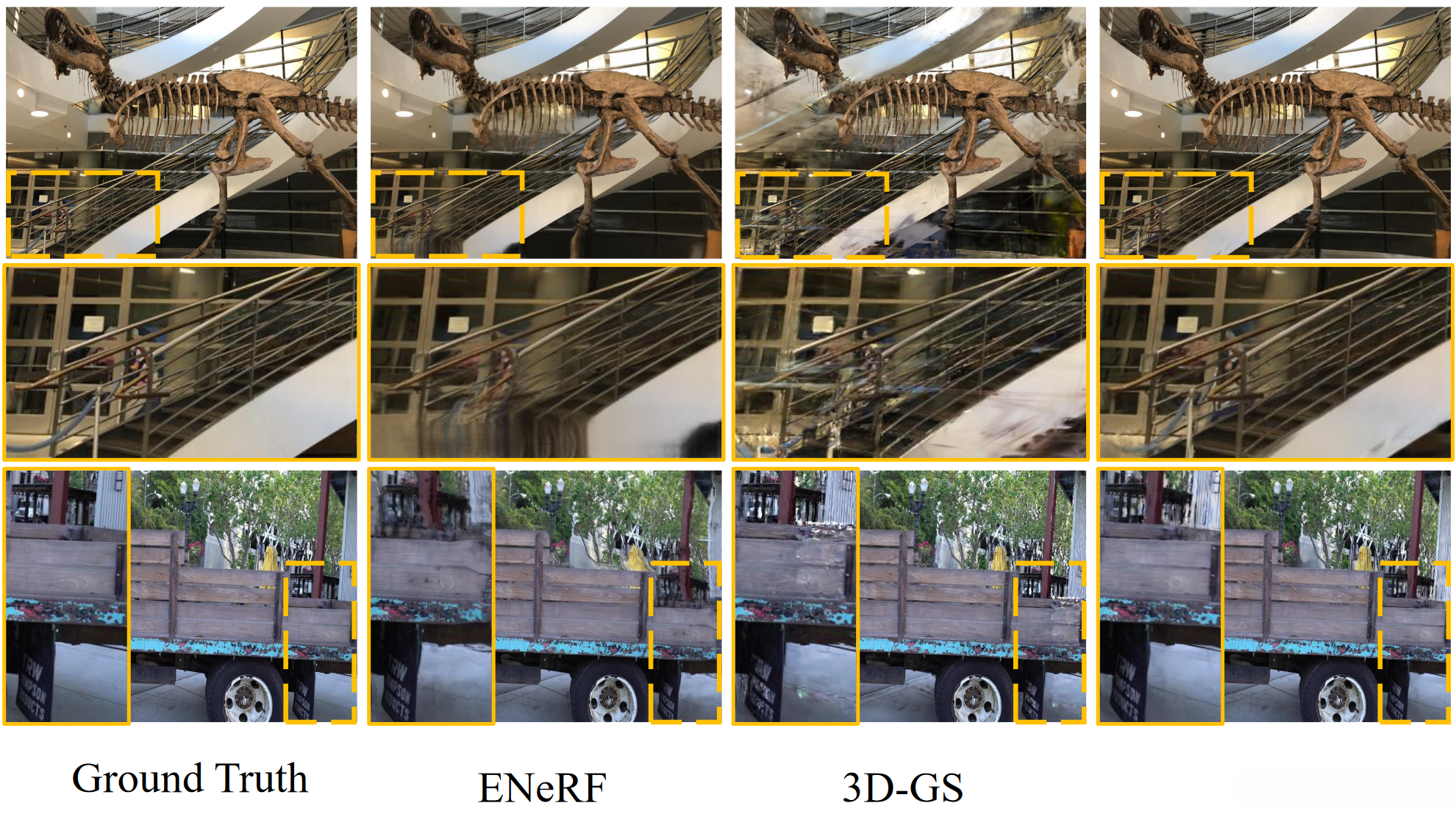 Qualitative comparison of rendering quality with state-of-the-art methods after per-scene optimization.