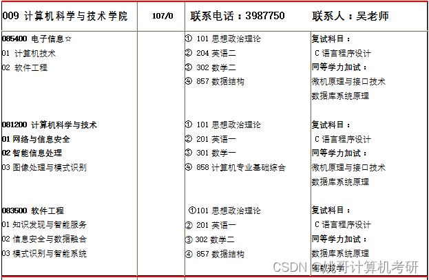 初试科目: ①101思想政治理论②201英语(一) ③301数学(一)④858计算机专业基础综合