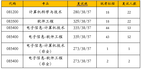 | 最高分 | 最低分 | 平均分 | 复试人数 |