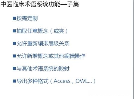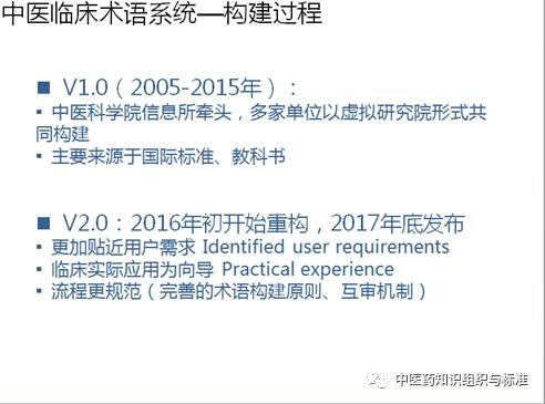 中医临床术语系统V2.0版本将在2017年年终正式发布;系统收录了约三万多个概念;包含了一百万多个术语;涉及了大约二十万个关系项;其中约六成的概念具有定义,并提供了来源与出处信息。