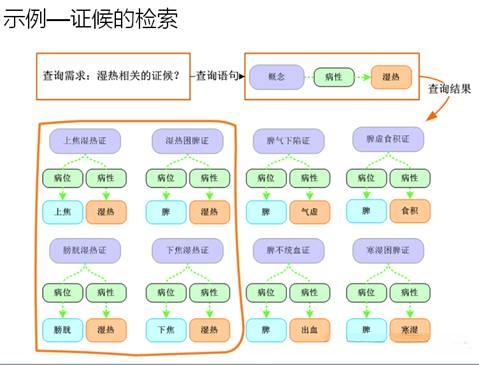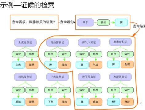 正确地表达了证候之间的关系后,从而能够彻底实现某种证候的相关信息检索;其中涉及的证候病机、病位、病性等信息均需考虑.