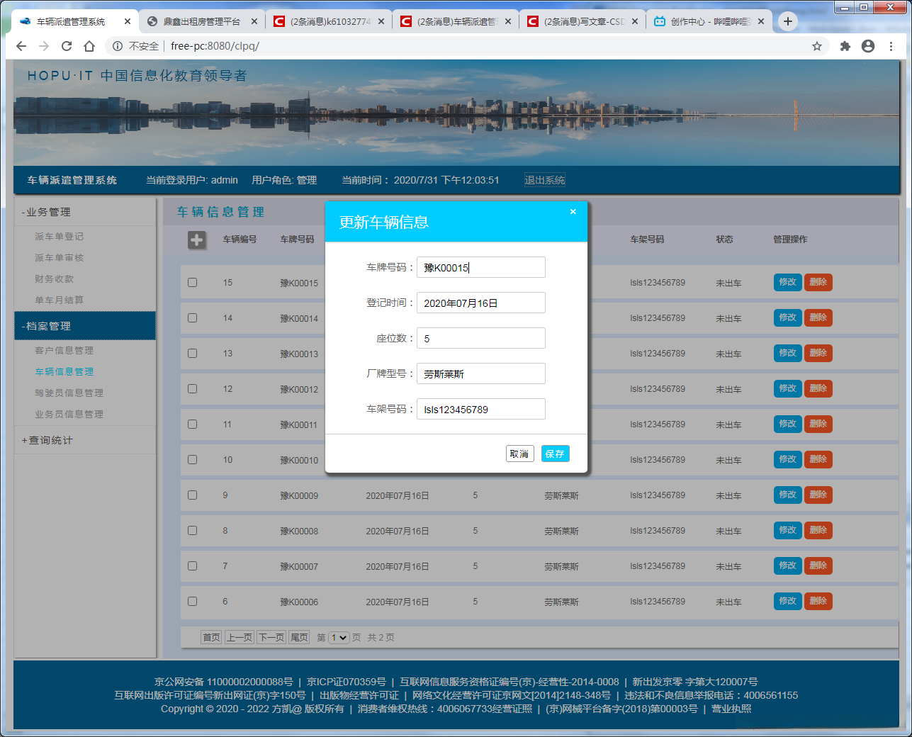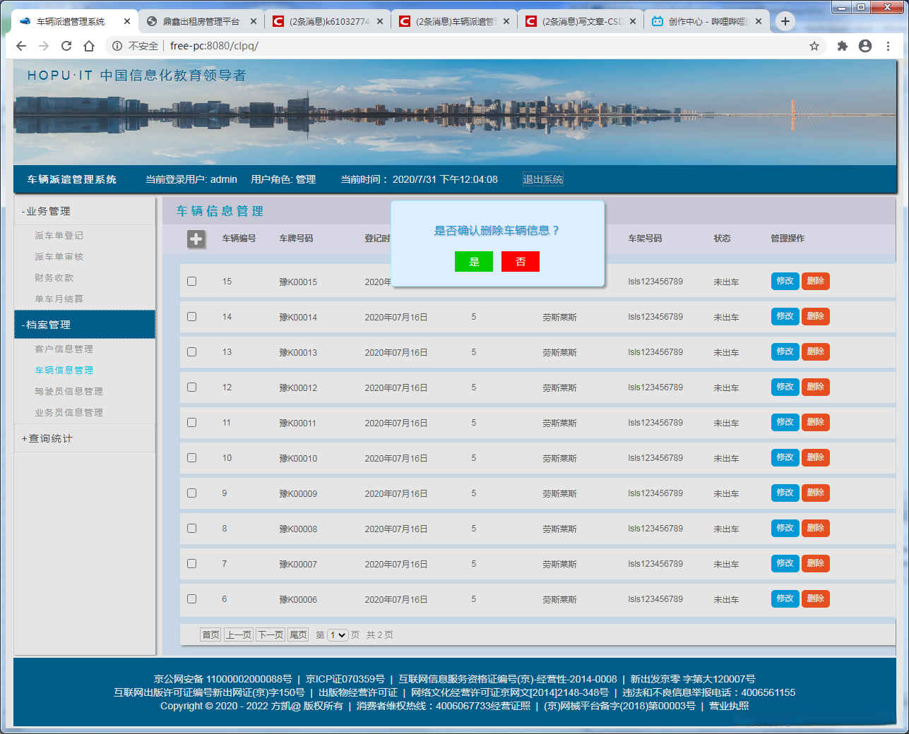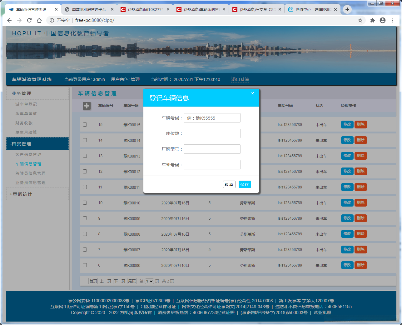 无论添加还是修改都会验证车牌号码是否已存在, 不能重复添加。