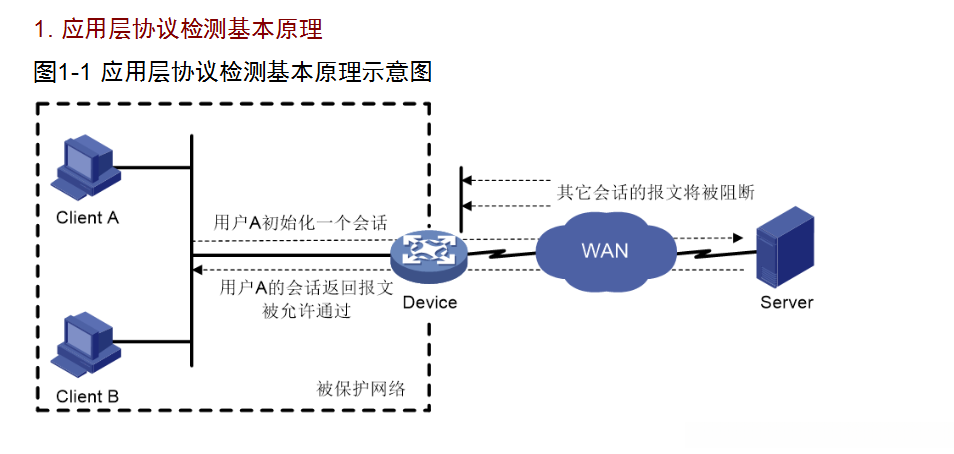 该协议检测机制通过建立会话表项来收集并记录相关传输层信息如源地址、目的地址及端口号等数据,并最终实现动态放行报文的目的。