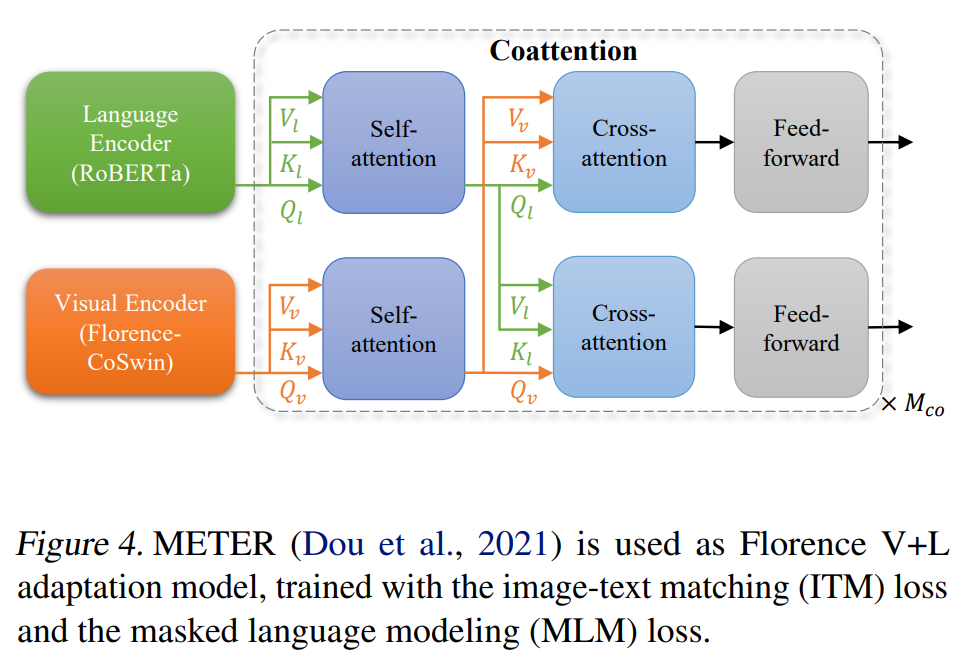 在此基于该模型中,研究人员采用了Roberta和CoSwin作为语言编码器,并且采用了METER作为adapter。
