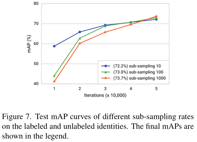随着行人类别数量的增加, 计算过程可能会耗费较多的时间, 因此我们采用了通过双采样策略来处理labeled和unlabeled identities的方法.