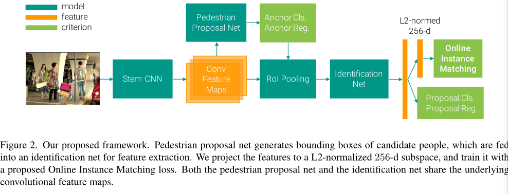 现有行人的再识别方法主要关注的是经过裁剪后的行人的照片。然而,在现实场景中获取的照片往往存在明显的差异性。为了弥补这一差距并提升性能表现,在本文中我们提出了一种新型的人流搜索框架。该框架通过将行人检测与行人都识相结合的方式,并利用单一的卷积神经网络进行训练以达到目标效果。文中采用了OIM损失函数(Online Instance Matching)来训练网络结构,在实际应用中该算法相较于传统 Softmax 损失函数在收敛速度上表现出更强的优势