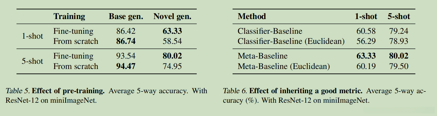 根据我们在表1、2、4和7中的实验结果表明,在5组样本中元学习阶段的表现显著弱于单组样本的表现。我们推测这一现象可能源于当样本数量增加时,平均特征被用作分类器-基线类中心的一种更为稳健的选择。因此元学习的效果相对下降了。