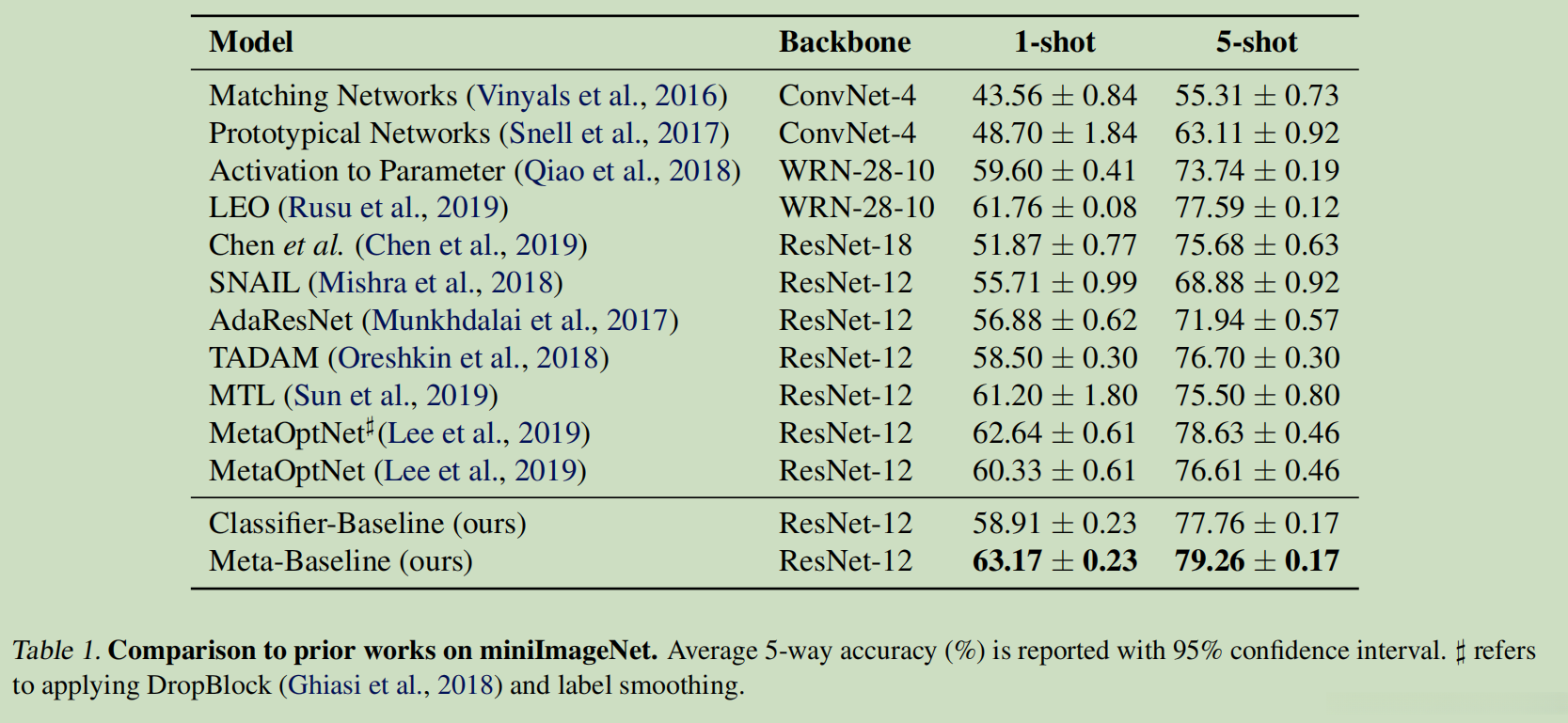 开发出了一个简单的Meta-Baseline方法,在结合分类预训练与元学习优势的同时,在性能上显著超越了现有基准水平。
