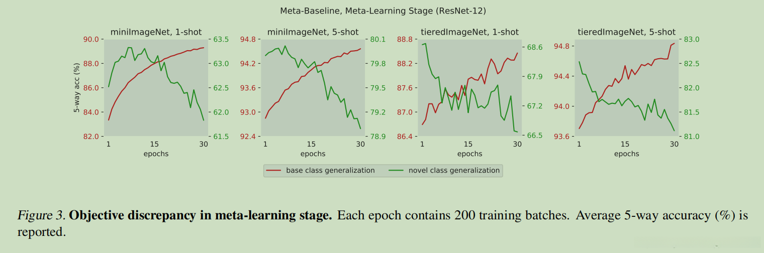 在元学习阶段可能存在一个客观存在的差异, 改进基类泛化反而可能导致新类泛化的性能下降。