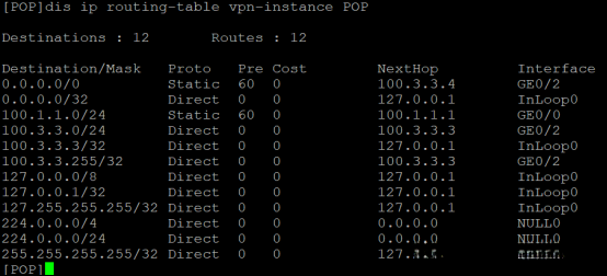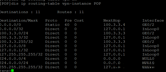 [POP]ip route-static vpn-instance POP 0.0.0.0 0 100.3.3.4