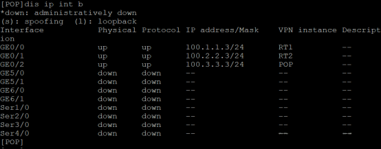 [POP-GigabitEthernet0/0]ip add 100.1.1.3 24