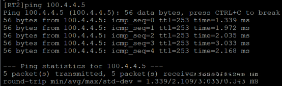 56 bytes from 100.4.4.5: icmp_seq=4 ttl=253 time=2.038 ms