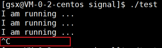 实际上当用户按Ctrl+C时,这个键盘输入会产生一个硬中断,被操作系统获取并解释成信号(Ctrl+C被解释成2号信号),然后操作系统将2号信号发送给目标前台进程,当前台进程收到2号信号后就会退出。
