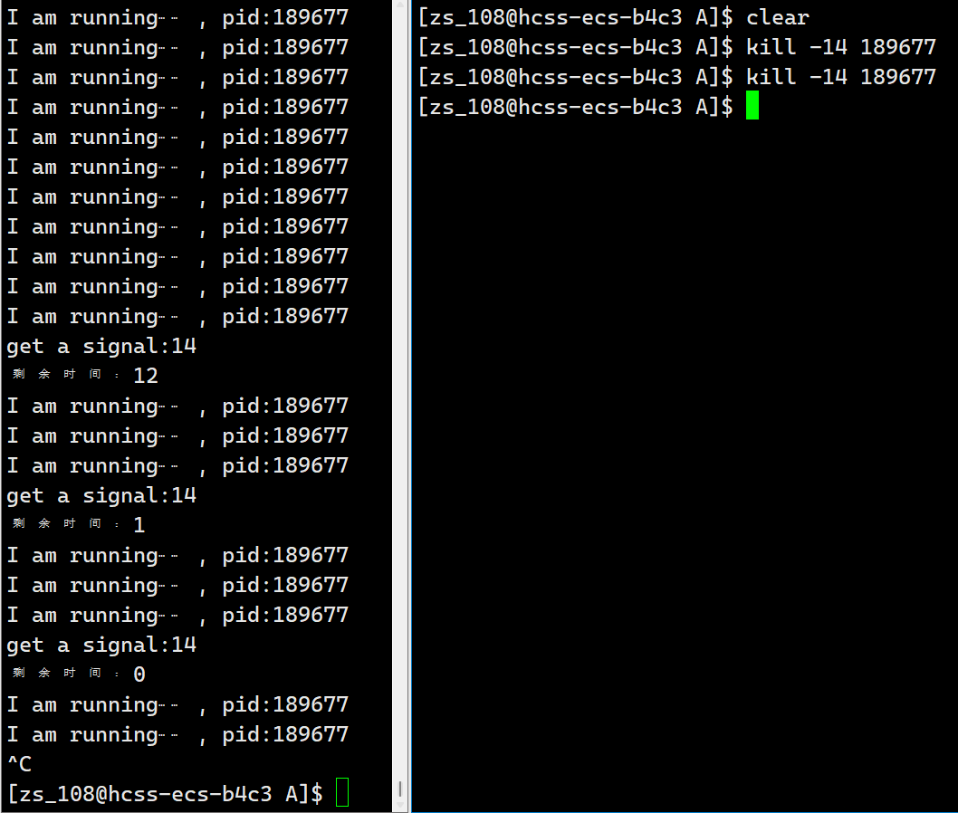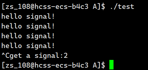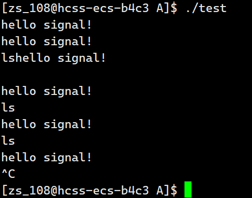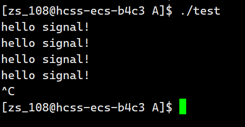 我们按ctrl+c也不能终止掉这个进程,这个就是我们把这个进程对2号信号的默认处理方式已经修改成我们传入的自定义方法handler方法