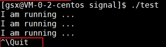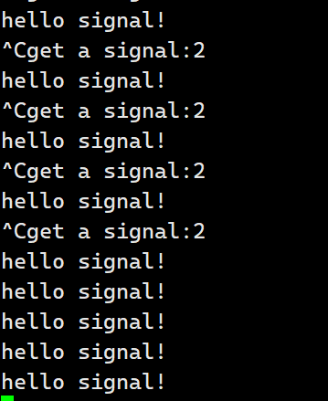 我们知道该程序的运行结果就是死循环地进行打印,而对于死循环来说,最好的方式就是使用Ctrl+C对其进行终止。