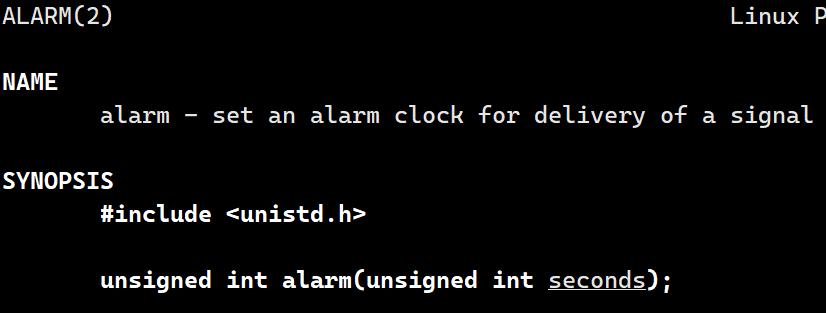- 如果调用alarm函数前,进程没有设置闹钟,则返回值为0。