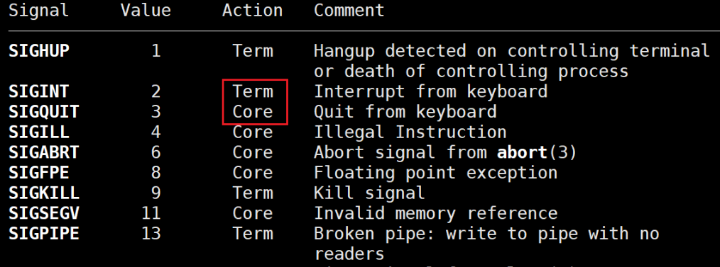 由此也证明了,当我们按Ctrl+C时进程确实是收到了2号信号。