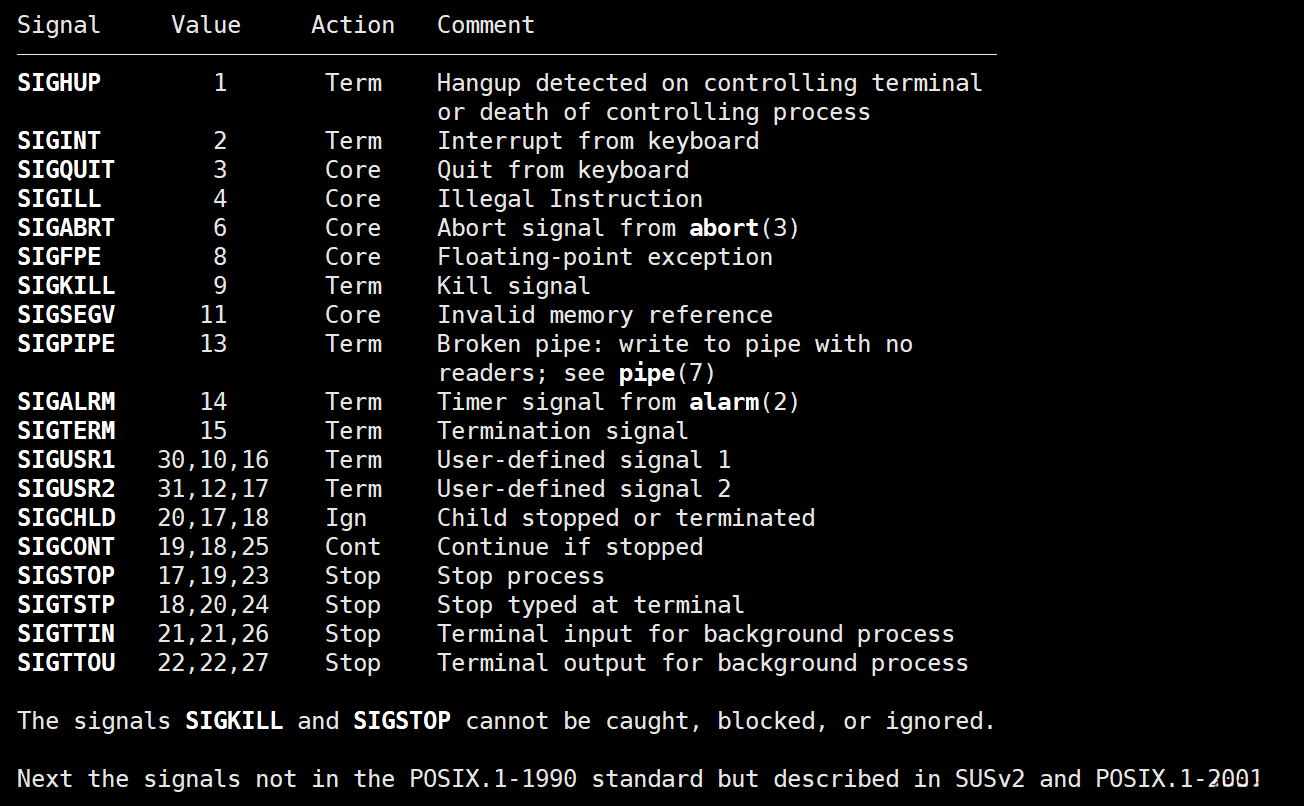 3、查看系统定义的信号列表