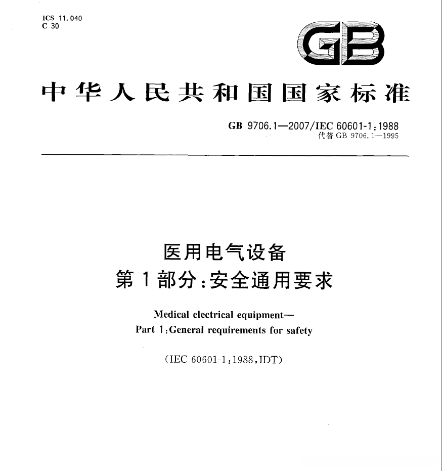 从事有源医疗器械相关工作的朋友一个难以避开的标准便是《GB 9706.1-2007 医用电气设备 第 1 部分 :安全通用 要求》(以下简称 GB9706.1),该标准于 2008 年 7 月 1 日发布实施,要求面向的对象是医疗电气设备的制造者和使用者。