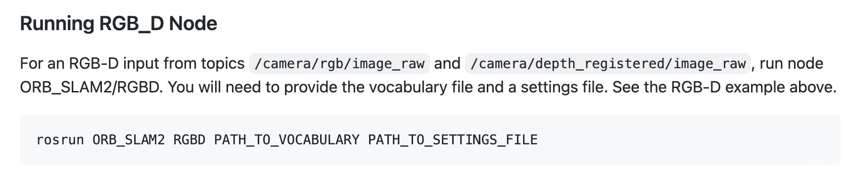rosrun ORB_SLAM2 RGBD ../Vocabulary/ORBvoc.txt ROS/ORB_SLAM2/Asus.yaml