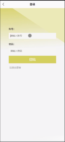 首先双击打开App,连上网络之后会显示出本系统的登录界面,这是进入App的第初始页面“登录”,能成功进入到该登录界面则代表App的开启是成功的,接下来就可以操作本系统所带有的其他所有的功能。登录界面如图5-1所示。