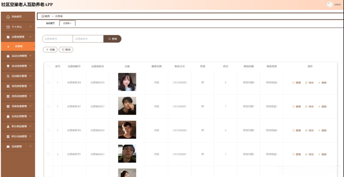 图5-11志愿者管理界面图