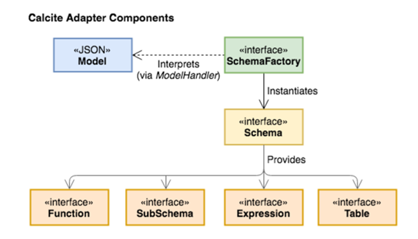 适配器实现了calcite通过连接多种数据源来获取所需信息。该系统的组件架构如图所示。