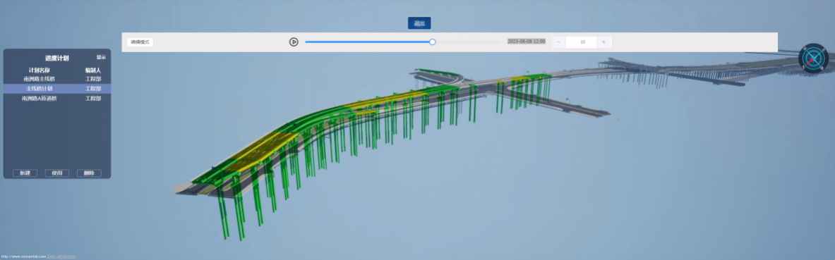 自动播放进度,即模拟跟随时间进度变化和实际工程完成情况。