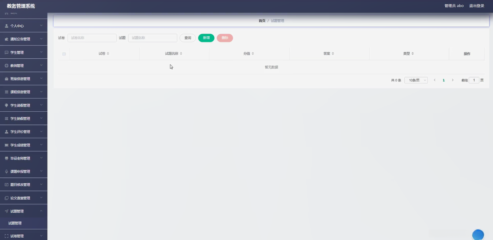 本课题的目标是开发一款利用人工智能技术和大数据分析实现高效智能教务管理系统,在日常管理和教学服务中进一步优化学校在教育管理和教学质量方面的表现。借助智能化的技术支持实现高效的日常管理和个性化的教学服务,并为学生和教师 offer 更加简便且贴心的服务方案