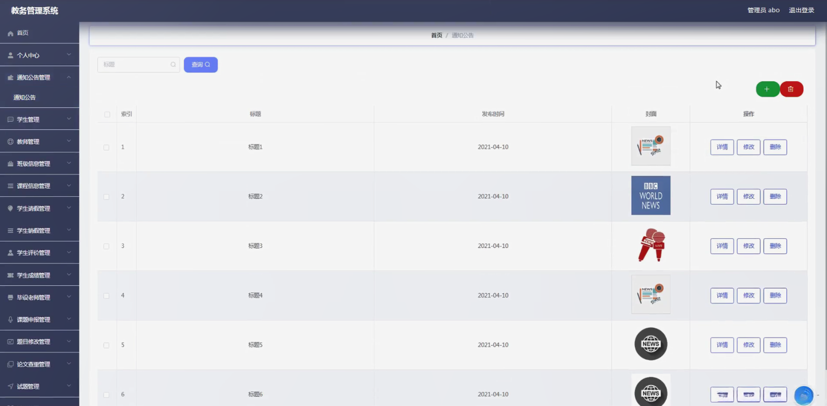 通知公告管理:此功能主要用于发布各类学校通知公告信息,并包含会议通知、活动信息发布以及新闻稿等内容,并便于向学生传达各类重要信息并进行信息发布