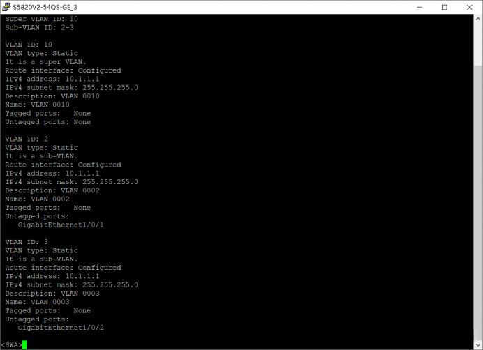 [SWA-vlan10]subvlan 2 3---------sub vlan