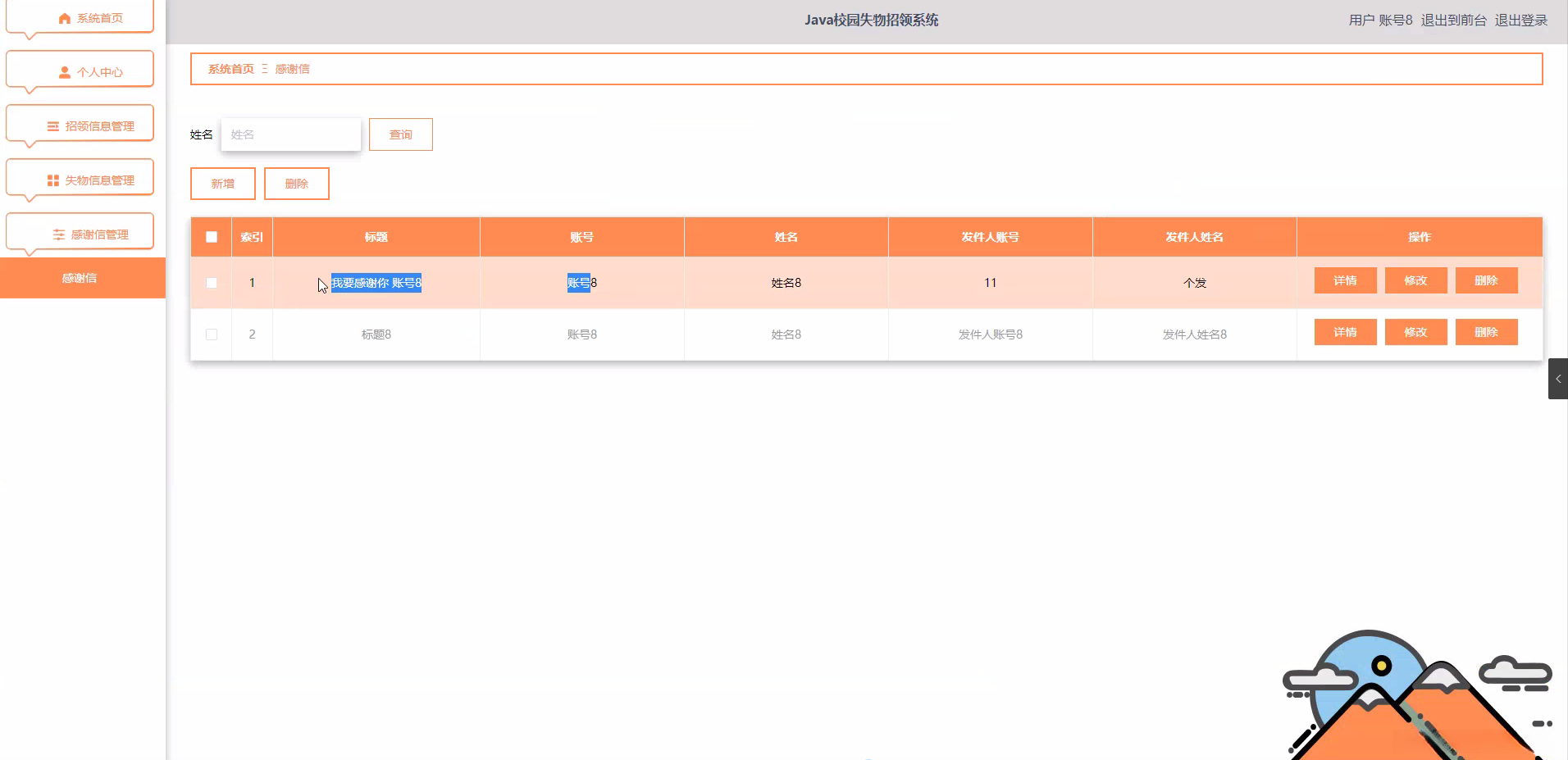 研究意义: 开发一个校园失物招领系统对于提升失物招领效率与准确率具有重要意义。规范化的处理流程能够确保失物信息定期更新并快速传播出去的同时还具备高效的查询功能以及精准的匹配服务从而能够显著提升失物物品的召回率。系统的应用不仅有助于培养学生的责任意识与自我管理能力还能助力校园文明建设并进一步增强拾金不昧的美好风尚最终营造出更加积极向上的校园氛围。