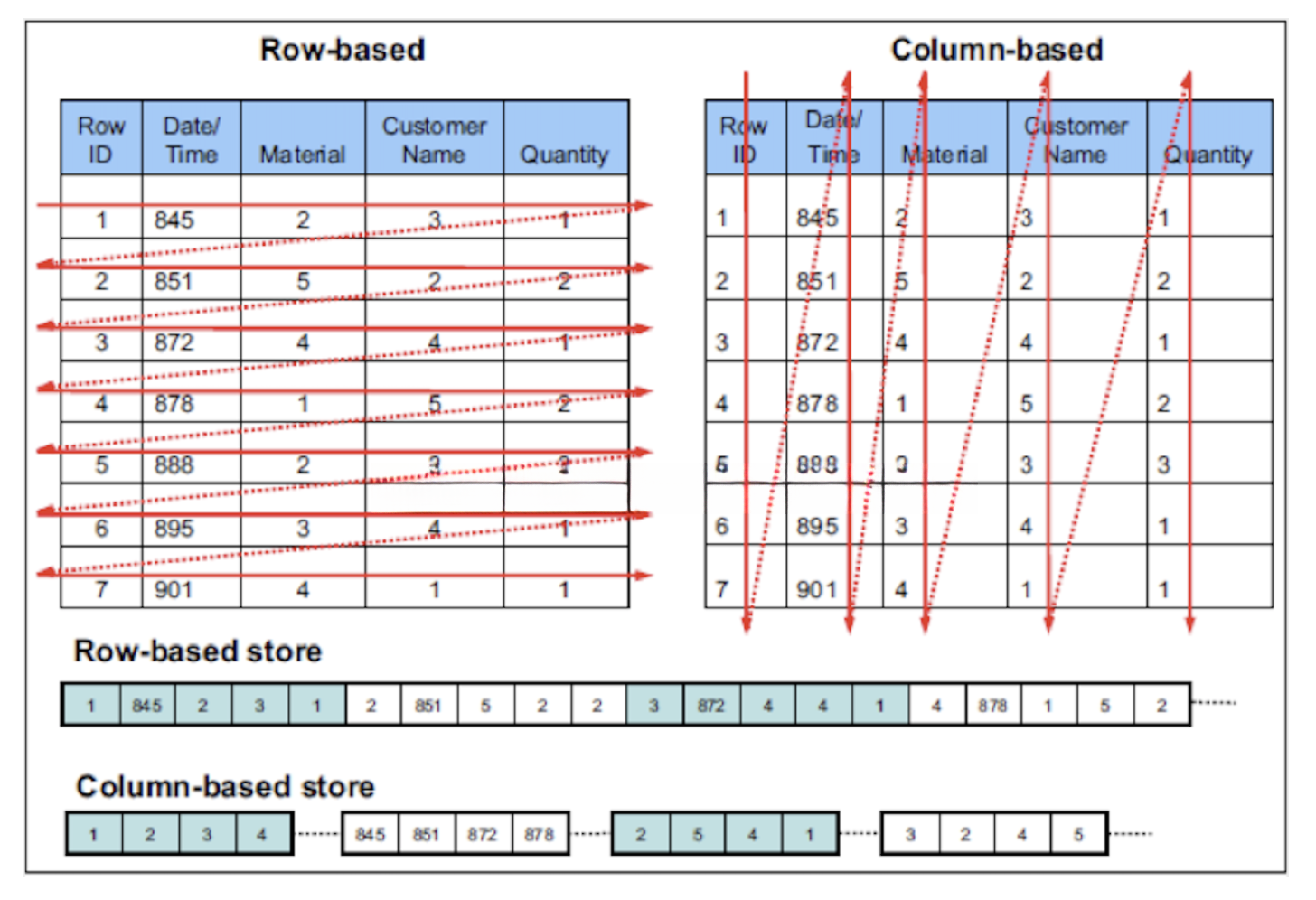 在传统行式数据库体系(MySQL、Postgres和MS SQL Server)中,默认情况下数据存储结构遵循特定规则。