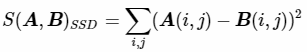 - SSD(Sum of Squared Distance)。即取两个小块的差的平方和 (这个结果越大,说明越不匹配,越接近0,块的相似度越高):