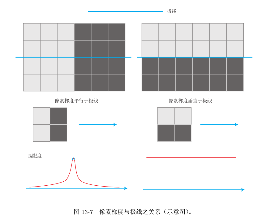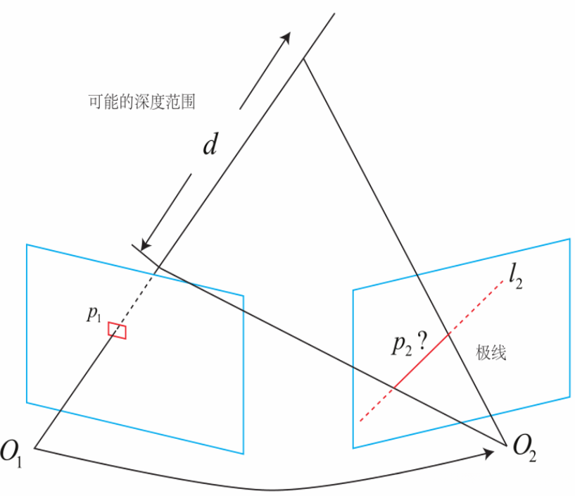 针对这个问题,一种比较有效的方法是使用极线搜索 与块匹配 技术。