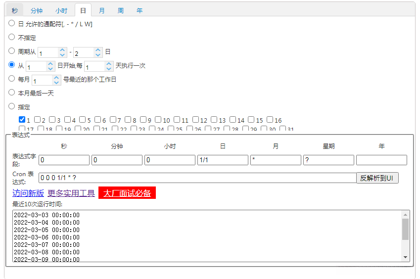 4. @Scheduled(cron = " 0 0 0 1/1 * ? ") 表示每天0点0分0秒定时启动