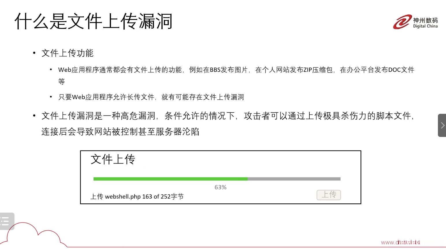 - File Upload Vulnerabilities是指Web应用因文件上传功能而暴露的信息安全风险,攻击者可利用此漏洞窃取敏感数据或下载恶意软件。